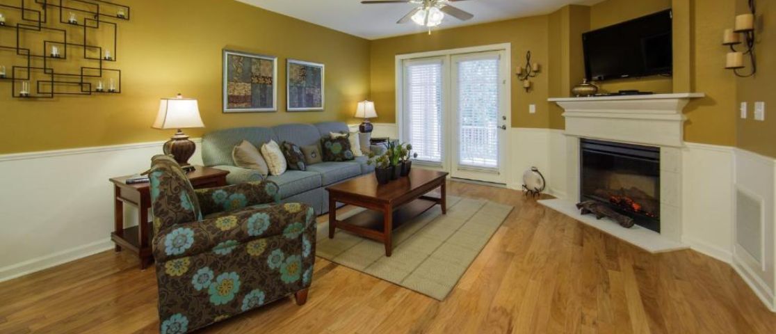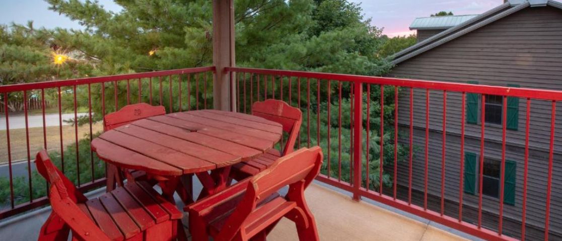 The fully equipped kitchen allows for convenient meal preparation, while the separate living and dining areas provide ample space to relax and entertain. Unwind in the comfort of your private master bedroom with a plush king-size bed, or retreat to the second bedroom with two twin beds, perfect for children or additional guests. Enjoy the convenience of in-villa laundry facilities, multiple flat-screen TVs, and complimentary Wi-Fi access throughout your stay. Step outside onto your private balcony or patio and take in the serene views of the Ozark Mountains, or cozy up by the fireplace on cooler evenings. Sleeps up to 6 people Show Less
