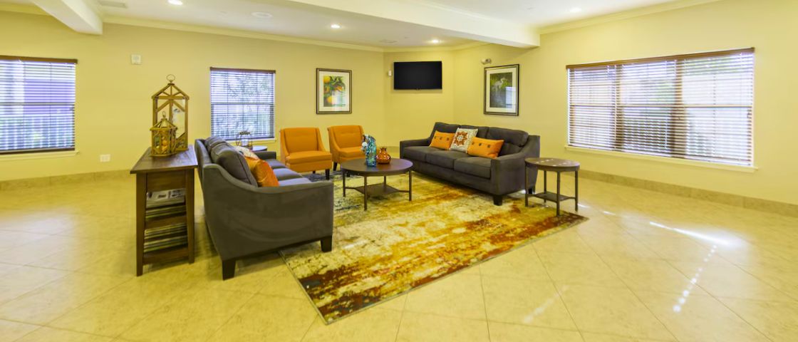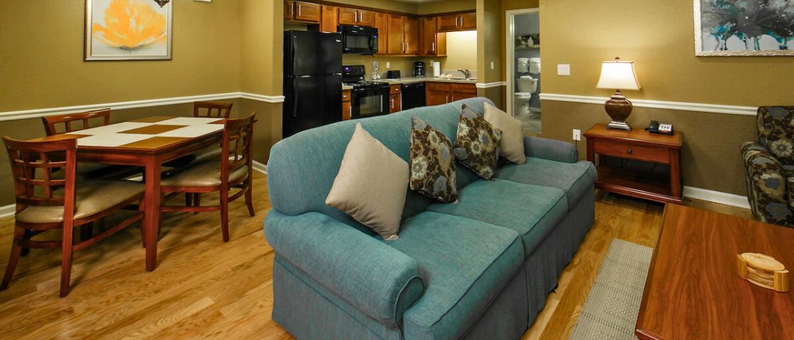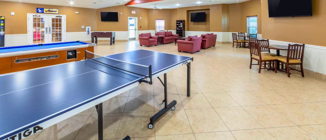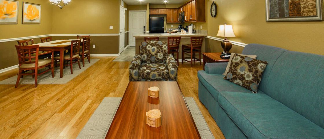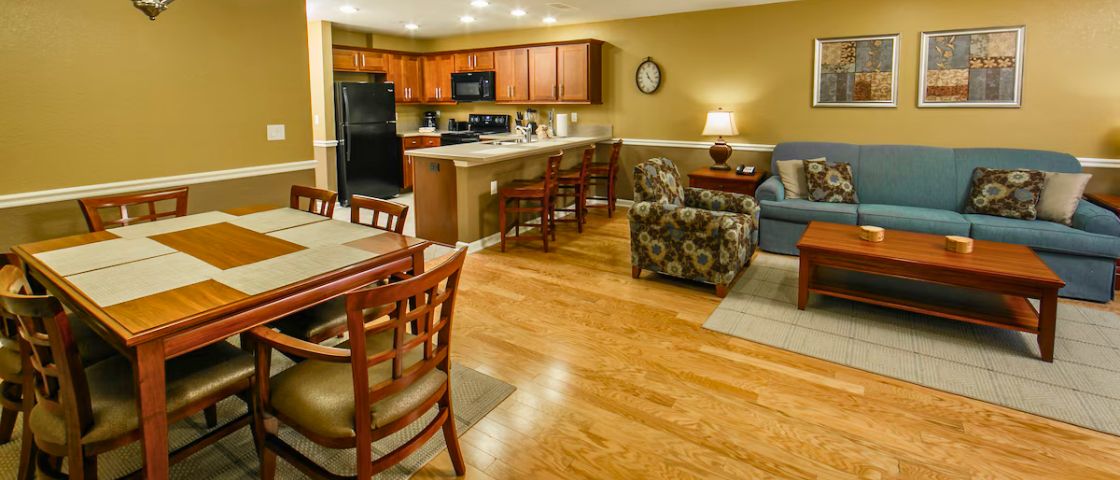 Resort-Style Comfort & Convenience – Relax with a fitness center, hot tub, movie theater, and in-room kitchens for a stress-free stay.