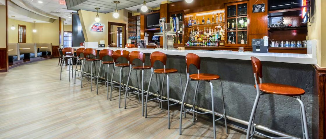 The restaurant offers a classic American breakfast and a fusion of American and Indian cuisine for dinner, along with daily drink specials in the lounge.