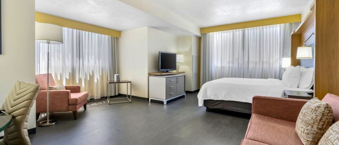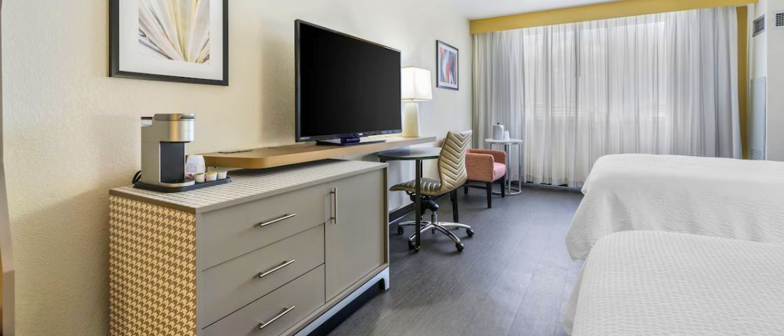 Indulge in modern luxury and comfort in our well-appointed guest rooms, designed to be your personal retreat after a day of adventure. Sink into plush bedding, enjoy your favorite shows on the flat-screen TV, and stay connected with complimentary high-speed Wi-Fi. Each room is equipped with a mini-fridge, coffee maker, and spacious work desk, ensuring both relaxation and productivity. Whether you’re waking up to stunning city views or unwinding in total comfort, every detail is designed to enhance your experience.