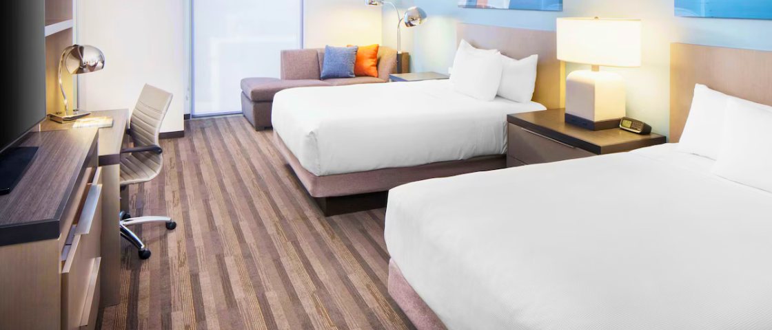 The Standard Bedroom features one or two extra-large double beds, is the perfect blend of comfort and convenience—ideal for families, friends, or business travelers. Each spacious suite includes a full kitchen with a microwave, stovetop, and refrigerator, a cozy living area with a plush sofa, a work desk, and complimentary Wi‑Fi—everything you need for a seamless stay. The modern bathroom comes stocked with fresh towels and premium toiletries, while the flat‑screen TV, in‑room coffee maker, and quality linens ensure a relaxing retreat after a day exploring Nashville. Book now to experience a stylish home base steps from the city’s best attractions. Show Less