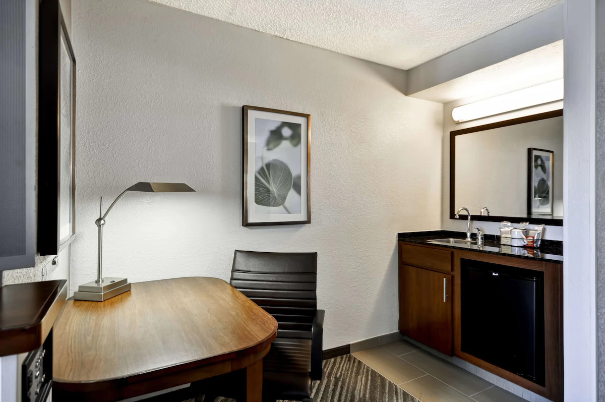 Hyatt Place Las Vegas offers a range of comfortable and modern room-type accommodations, including standard rooms with one king or two queen beds, as well as spacious suites with separate living areas and sofa beds. Each room is thoughtfully designed with a cozy corner sectional sofa, mini-fridge, and work desk. Guests can enjoy a great night's sleep on plush Hyatt Grand Beds™ with luxury linens and fluffy pillows. Show Less