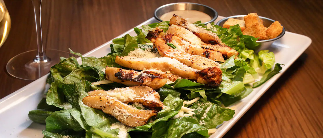 Enjoy a burger, Chicken Caesar Salad, or Turkey Pesto Sandwich with a premium drink.*