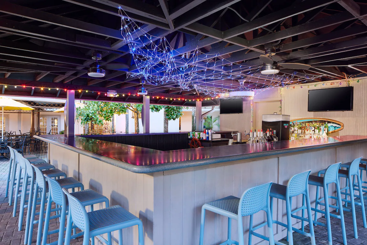Serves beer, wine, soft drinks, and frozen drinks. Located poolside, this establishment has a full bar available every evening. Happy Hour selections include $1 Budweiser®, wines by the glass, and Coca-Cola® products.